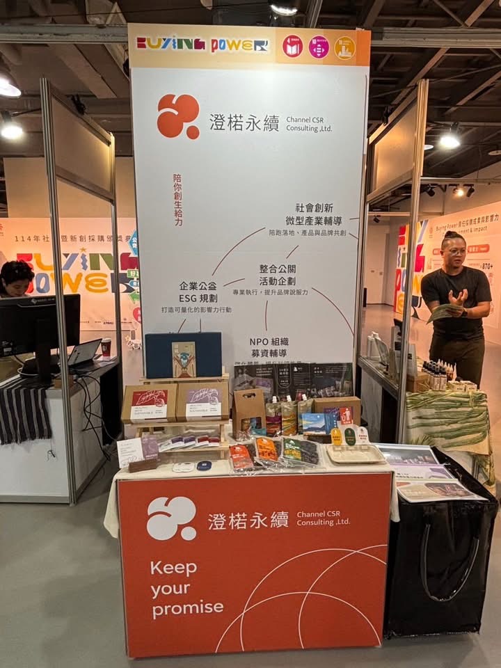 這次能站上 Buying Power 頒獎典禮現場展出,對澄楉永續而言別具意義。我們是從全台 900 多家社會創新企業中,被遴選出的 16家之一,代表的不只是單一品牌,而是一種角色定位。